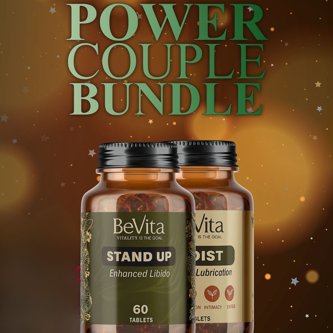 Our Power Couple bundle unites two of BeVita’s most talked-about formulas—Stand Up and Moist—into one powerhouse duo designed to ignite passion, intimacy, and confidence from the inside out.